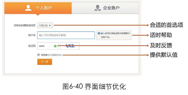 提供合适的首选项、适时帮助、及时反馈、提供合理的默认值,等等,这些细节的优化,可以帮助用户降低出错几率,使他们能够更快、更顺畅地完成任务,如图6-40所示。